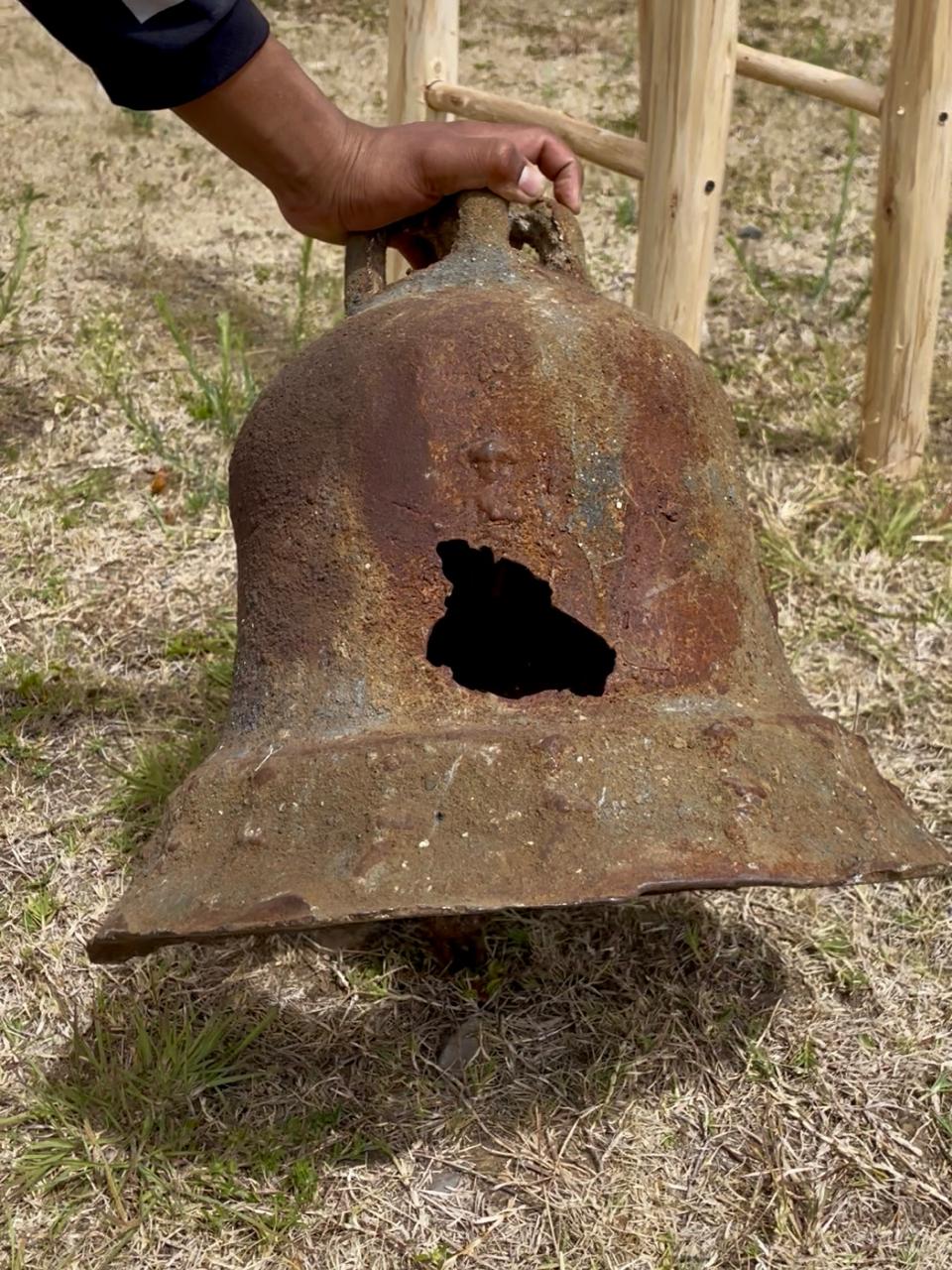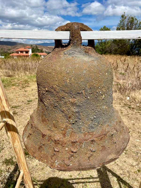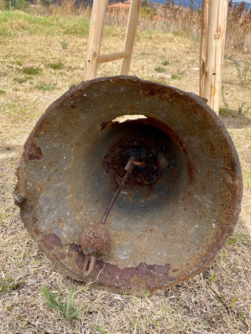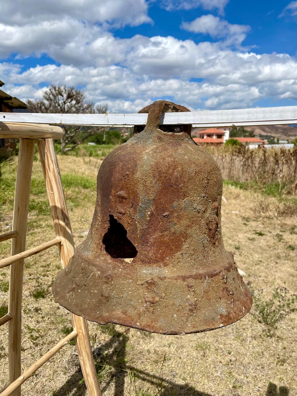 Dale un toque único y auténtico a tus espacios con esta campana antigua de hierro fundido, una verdadera pieza de colección. Recuperada tras haber estado enterrada por años, conserva su acabado rústico con pátina natural, lo que la convierte en un objeto decorativo exclusivo cargado de historia y personalidad. Tiene el badajo pero el sonido es debil y ronco, tener en cuenta que la campana tiene perforaciones y su uso es solamente decorativo.