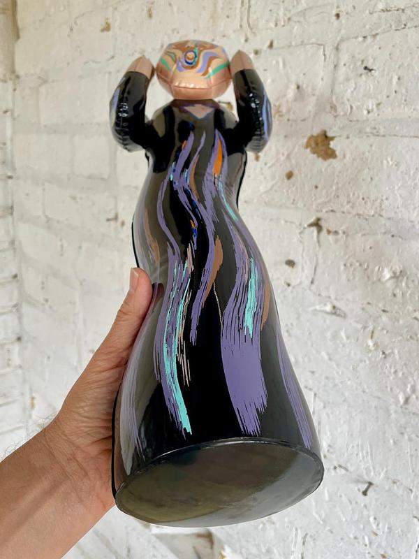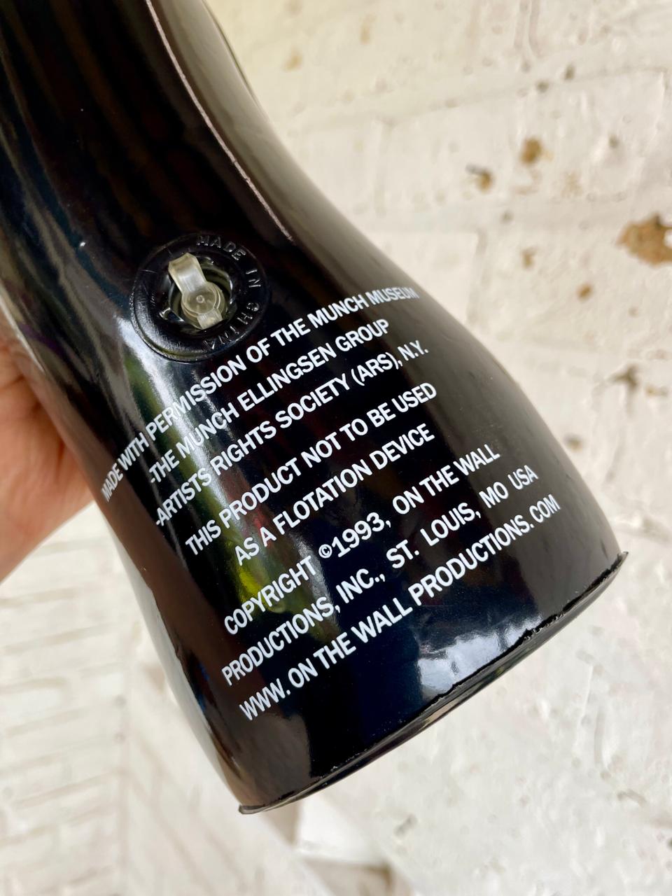La base convexa de la escultura le permite, al tocarla, generar un movimiento leve para mantenerse en equilibrio, generando la sensación de angustia y ansiedad reflejada en la obra original de Munch. Se encuentra en buen estado.