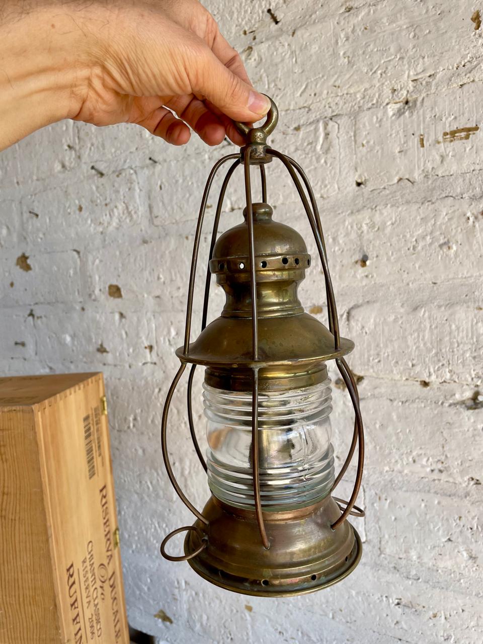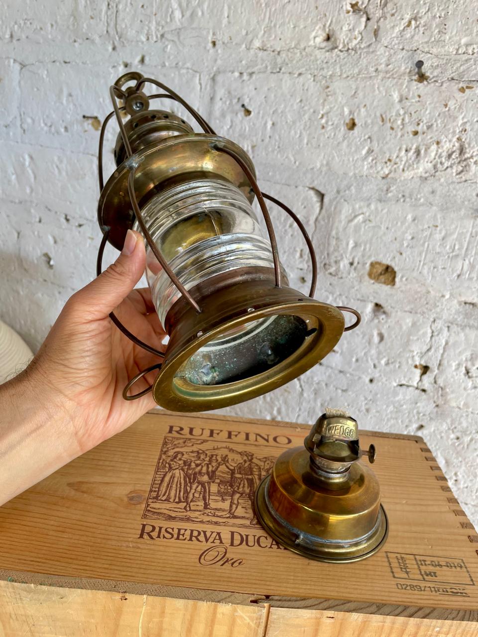 Farol náutico en bronce y vidrio de los años cuarenta, funciona con aceite y quemador de mecha, se encendia cuando el velero se anclaba para evitar choques con otras embarcaciones. Fabricado en los Estados Unidos en los años 40 para los veleros de las costas de la Florida. Se encuentra en buen estado con desgastes por el uso y el tiempo.