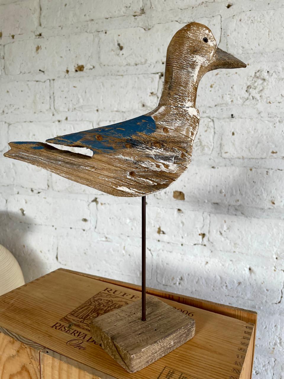 Gaviota artesanal rústica tallada en madera y decorada con pintura desgastada.