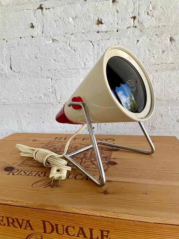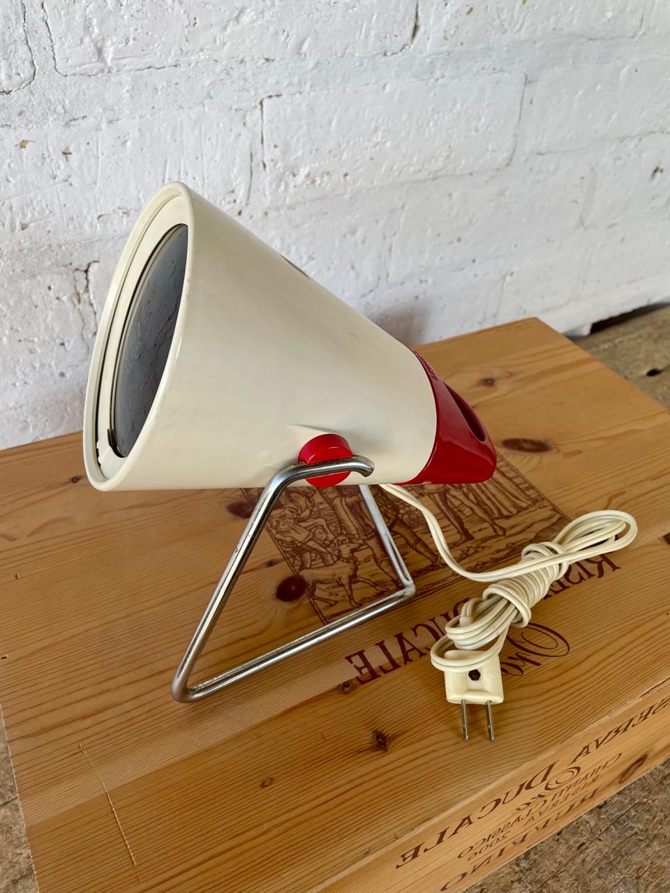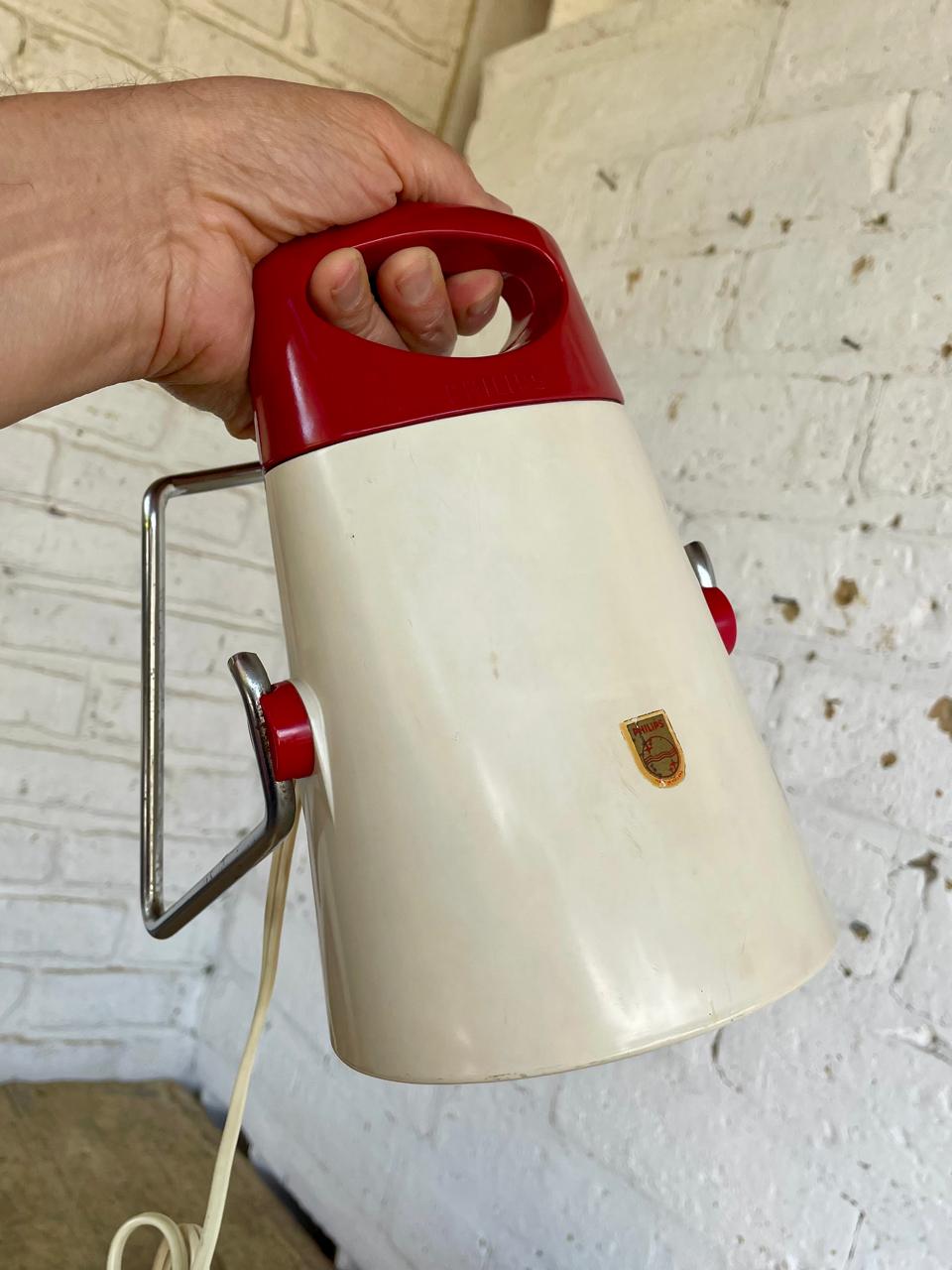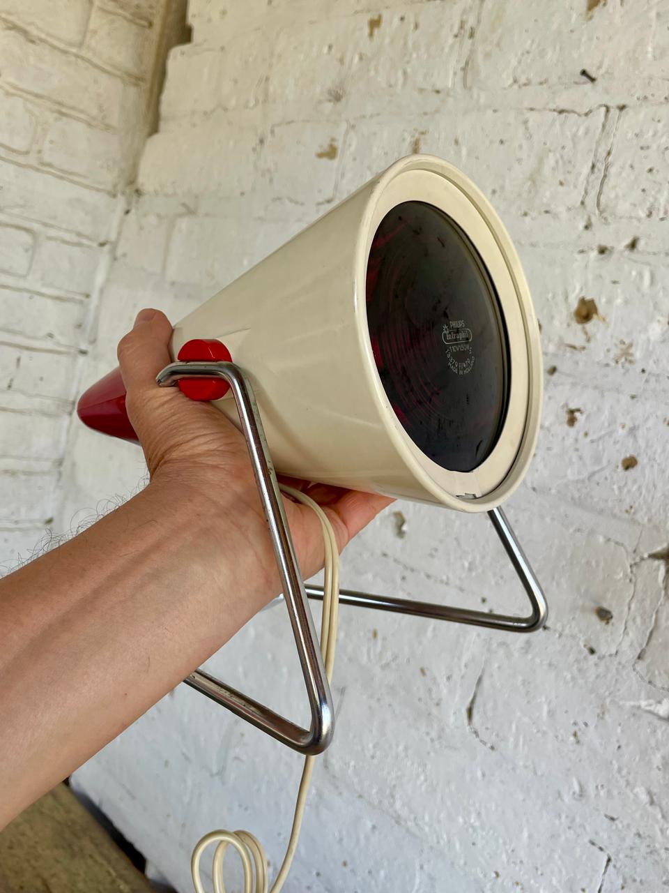 La lámpara eléctrica Infraphil 1.10 V 150W , de mediados del S XX, diseñada por la arquitecta francesa Charlotte Perriand (1903-1999) y fabricada en Holanda por Philips, de estilo "space age", como instrumento en terapia de calor, utilizando radiación infrarroja como relajante muscular para aliviar dolores musculares y articulares, así como para acelerar la curación de heridas.