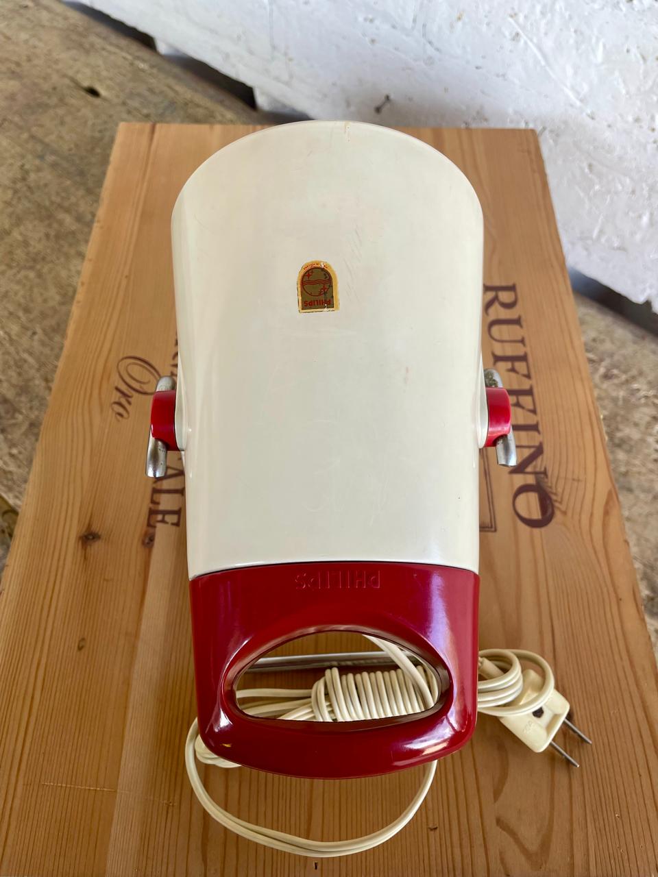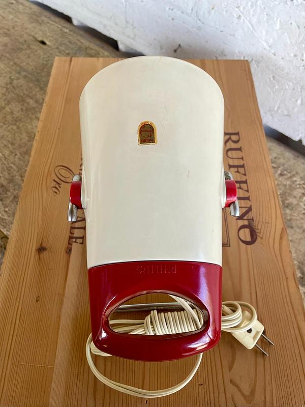 La caparazón es de aluminio, la manija plástica y la base de acero inoxidable. La parte eléctrica se encuentra en buen estado. Presenta algunos desgastes en la pintura logrados por el uso y el paso del tiempo.
