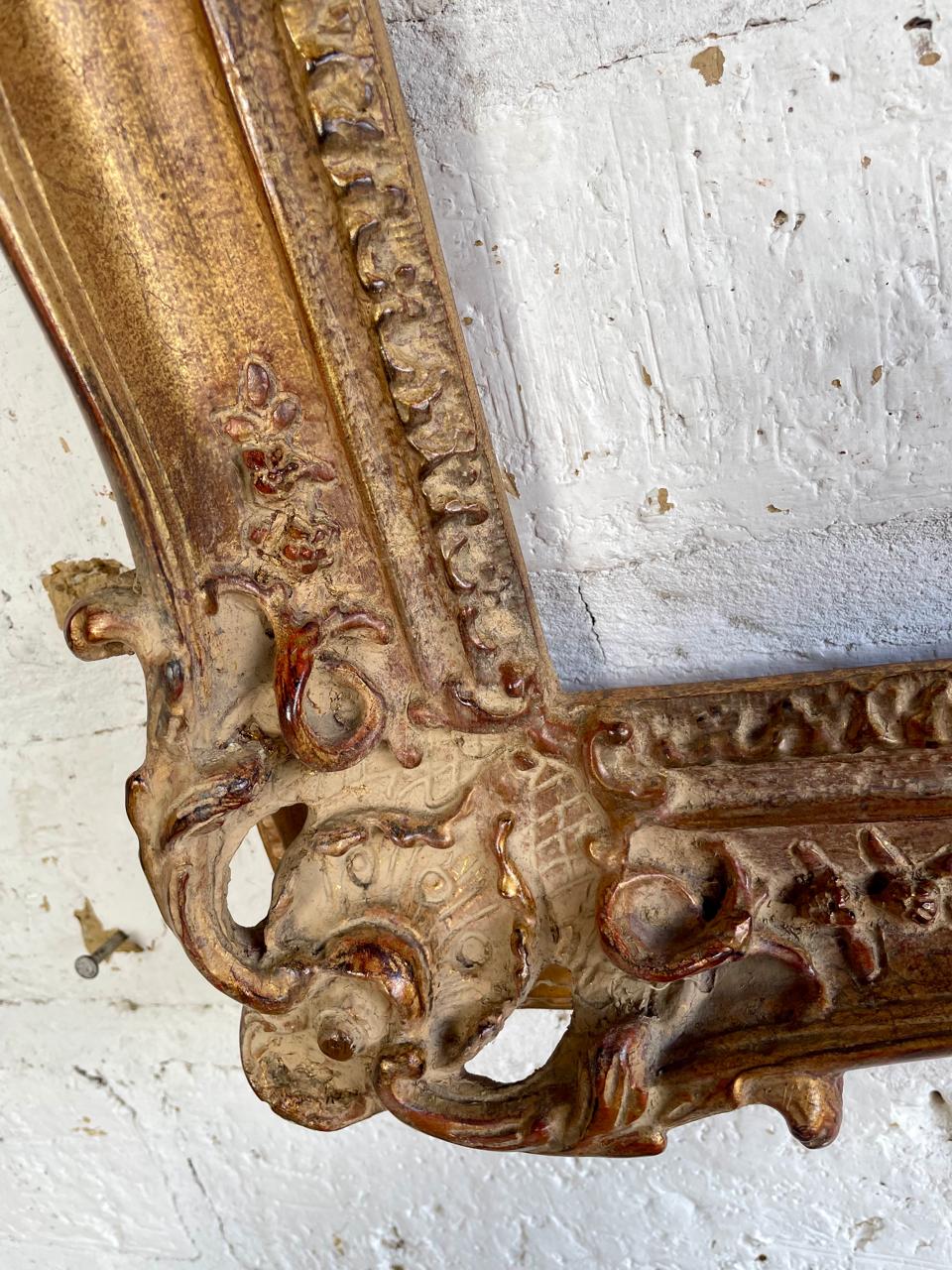 Marco de principio del S XX elaborado en madera de estilo victoriano clásico decorado con acantos en alto relieve. Conserva el acabado dorado original con algunos desgastes por el uso y el paso del tiempo.