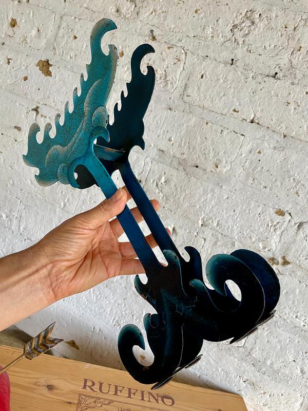 MEDIDAS: Altura total 46 cm. Largo 23 cm. Ancho 7 cm. Base 18 x 8 cm.