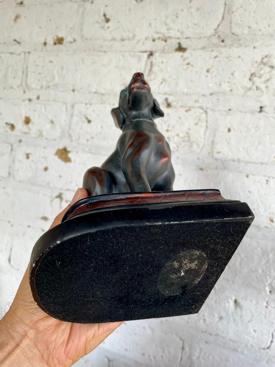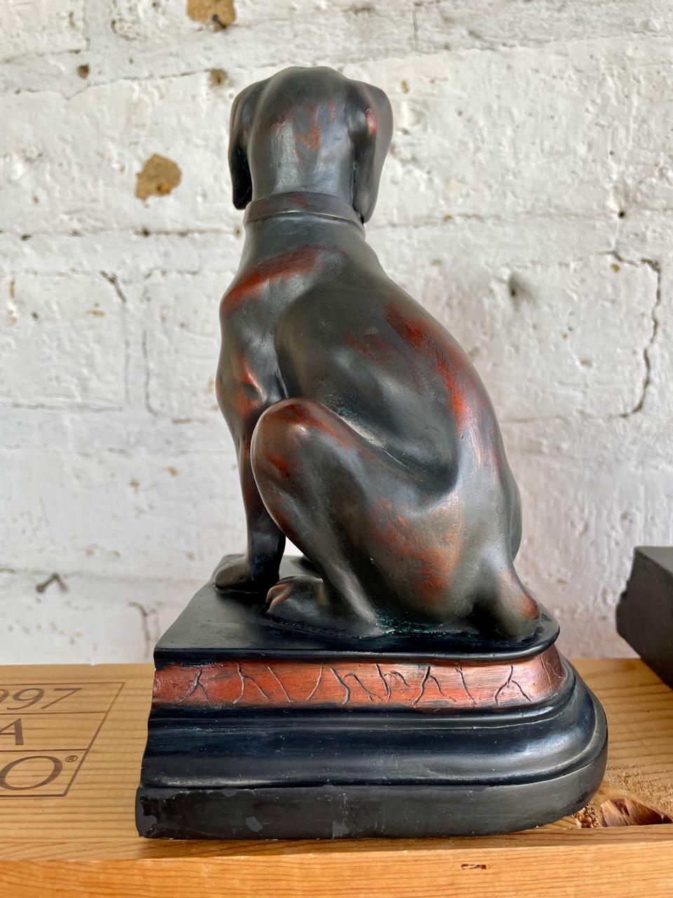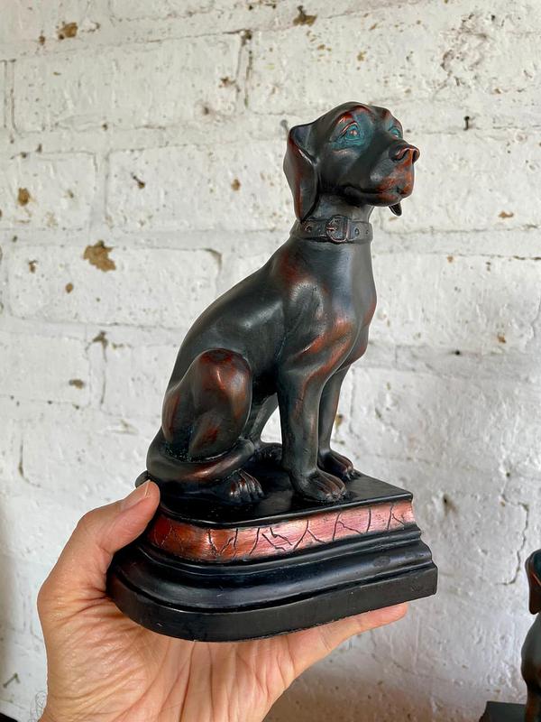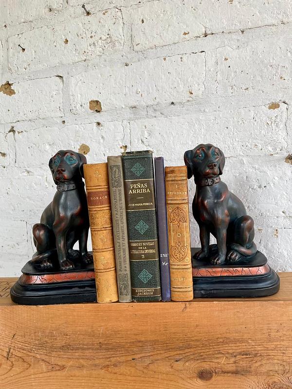 Dos perros para trancar libros, fabricados en resina de alta calidad con apariencia de bronce. Se encuentran en buen estado.