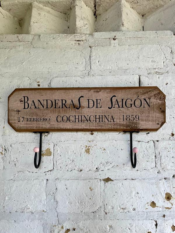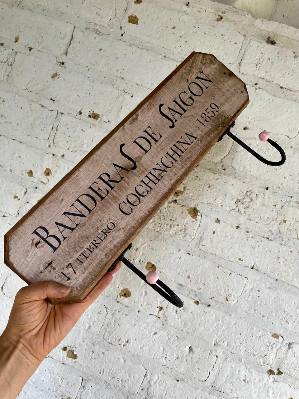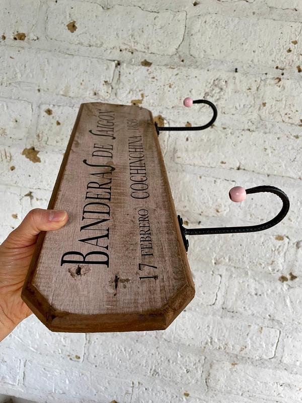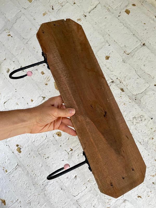 Colgador madera reciclada ganchos metálicos - Largo 50 cm. Ancho 14 cm. Distancia desde la pared 9 cm.