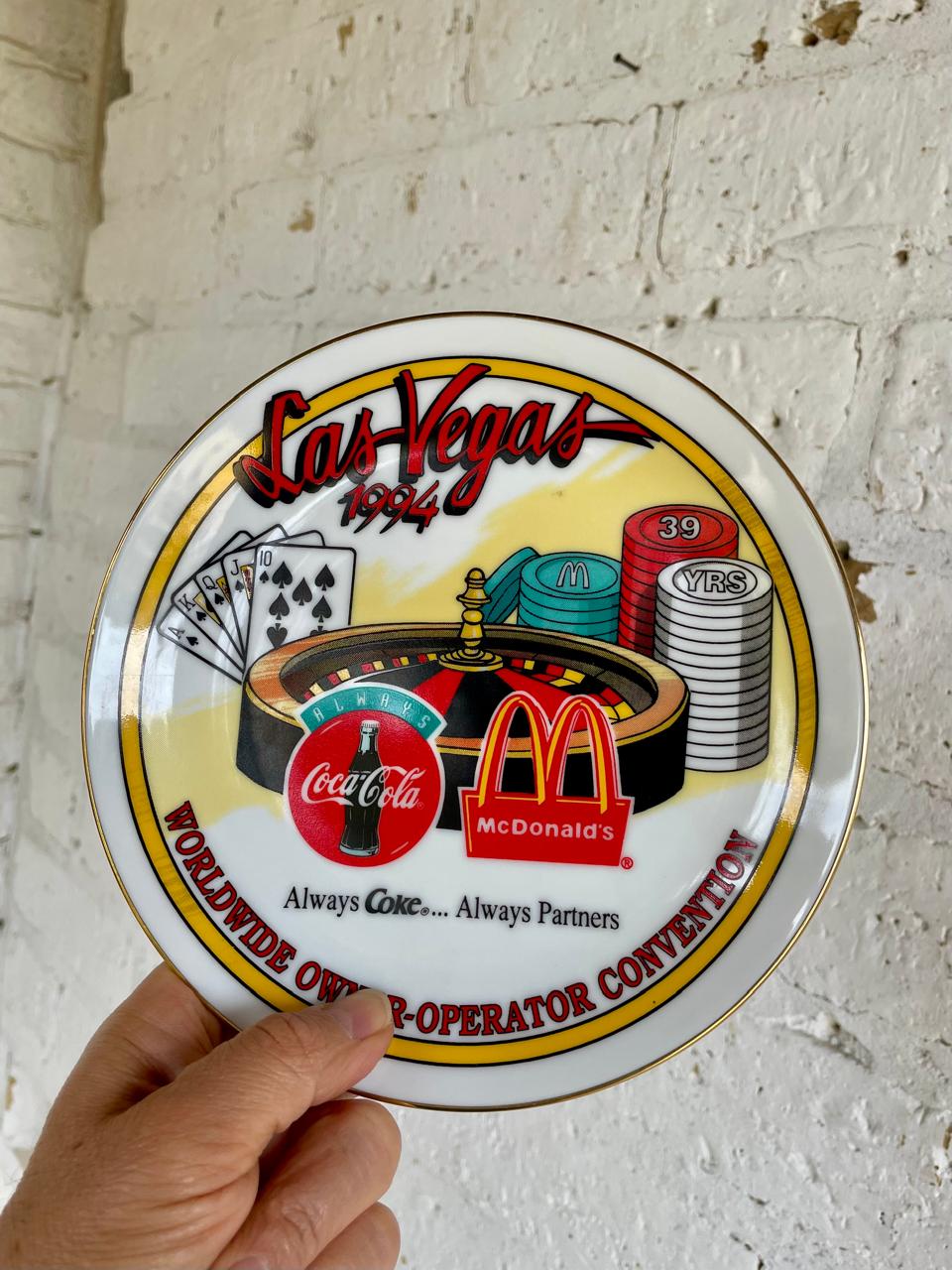 Plato conmemorativo de la convención de propietarios y operadores de McDonald's y Coca Cola de 1994 en Las Vegas.