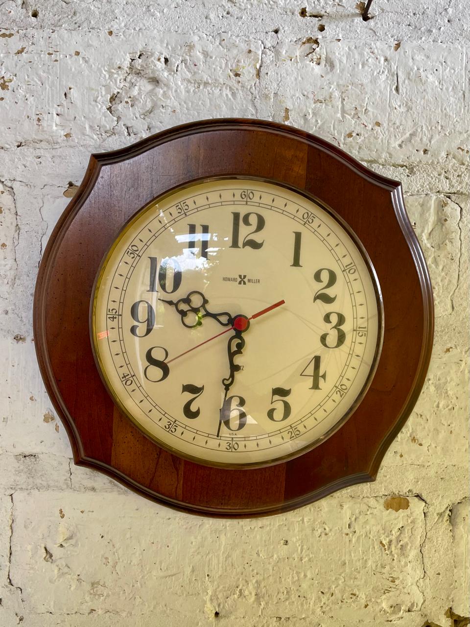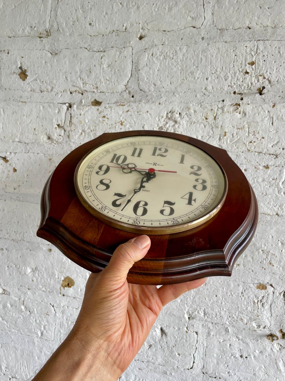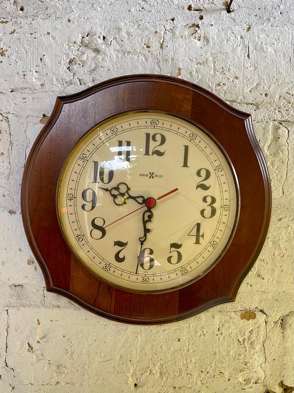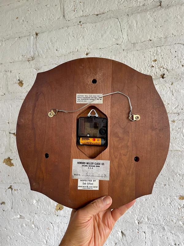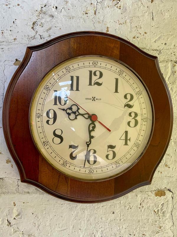 Reloj Howard Miller modelo 612-607, fabricado en Estados Unidos en los años noventa. El marco es en madera maciza biselada, el vidrio cóncavo tiene marco en bronce, funciona bien con una pila AA. Se encuentra en buen estado. MEDIDAS: Diámetro marco de madera: 31 cm. Diámetro del vidrio 20 cm.