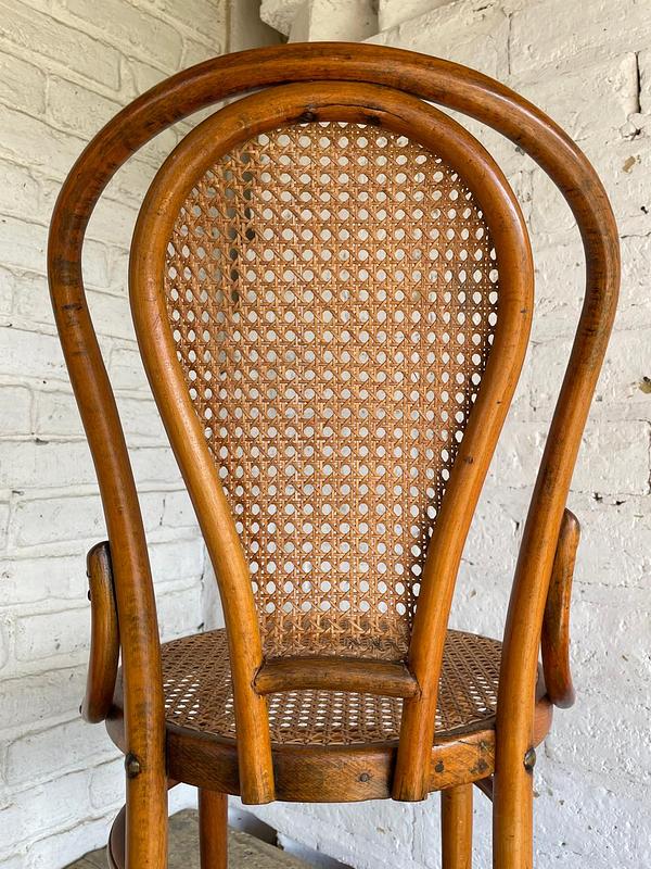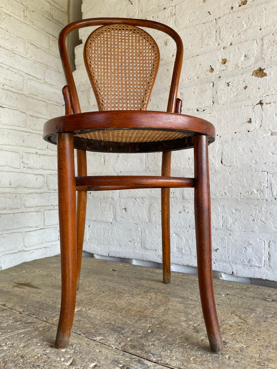 Silla en madera curvada, elaborada artesanalmente en Colombia en los años ochenta, con asiento y respaldar tejido en fibra natural, la madera y la fibra se encuentran en buen estado.